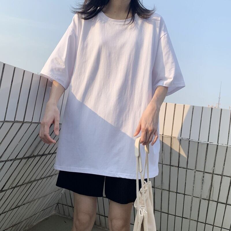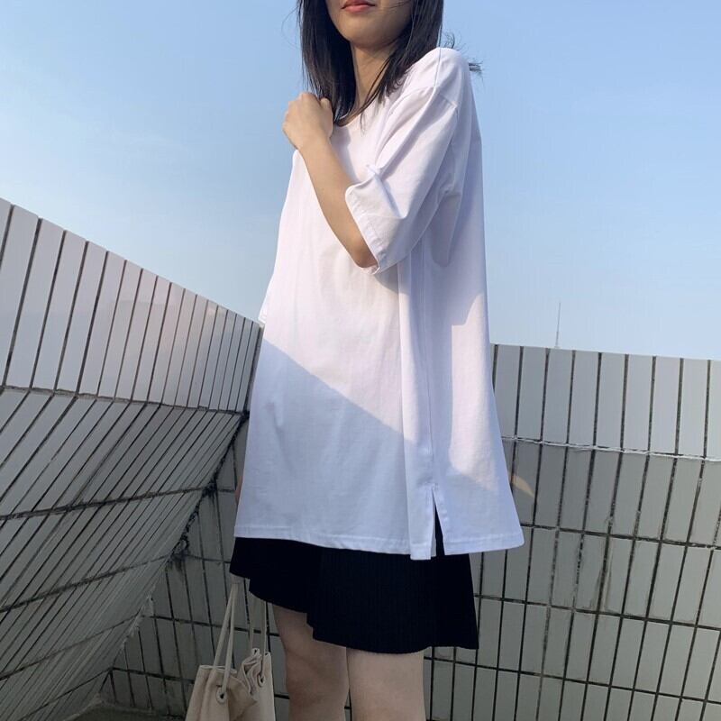 ピュアコットンラウンドネック半袖Tシャツレディースサマールーズミドル丈ハーフスリーブスプリットホワイトトップインスーパータイドネットレッド 夏物 Oネック TB2-6 TB2-61817934961