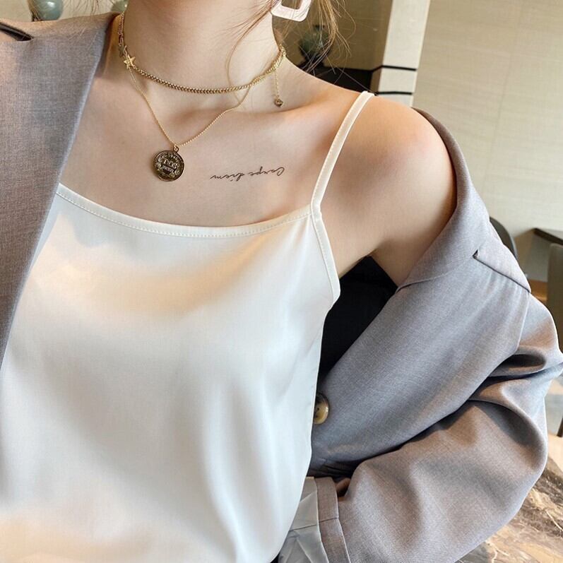 キャミソールレディースショートシルクホワイトスーツボトミングフレンチルーズノースリーブTシャツトップ夏 サマー 夏物 TB2-6 TB2-635614240684