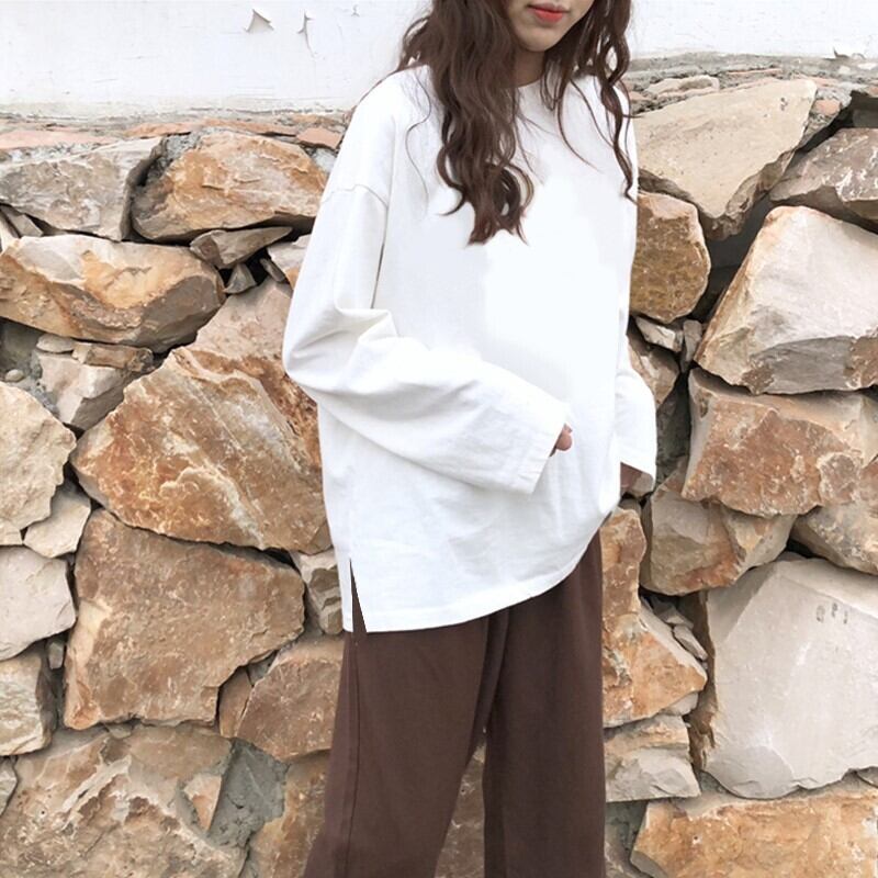 ins長袖Tシャツ女性春、秋、冬の新しいスタイルルーズワイルドホワイトコットンTシャツトップスレディースボトミングシャツ ロング スプリング 春物 オータム 秋物 ウィンター 冬物 TB2-6 TB2-613299907680