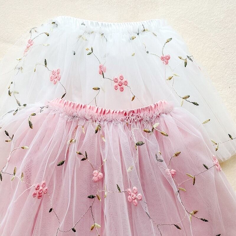 子供服メッシュスカートスカート刺繍花洋風オールマッチプリンセススカートリトルチュチュスカートパーマンススカート レッド パニエ ペチコート フラワーデザイン TB2-5 TB2-595191667577