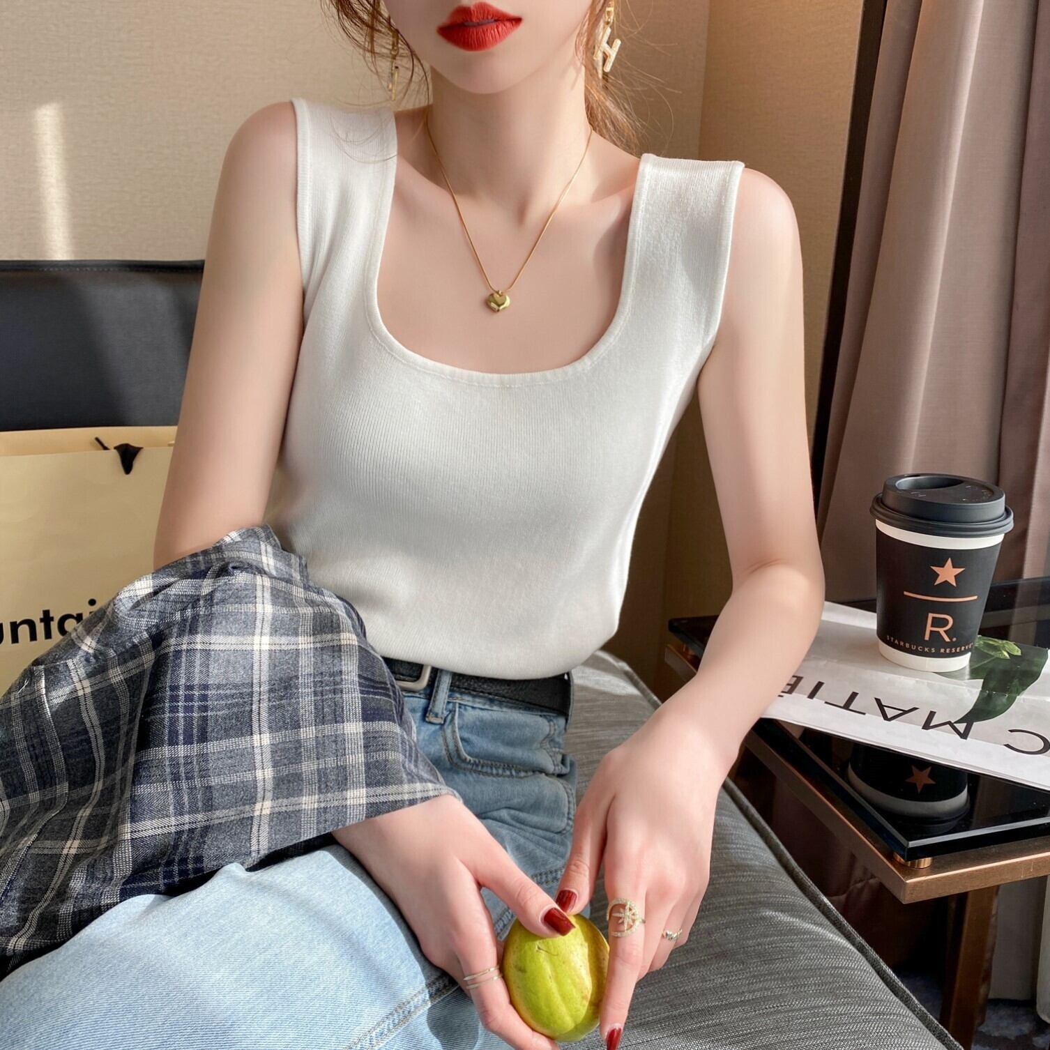 ノースリーブTシャツニットボトミングベスト女性夏潮ネットセレブインナーデザインニッチホワイトスリングアウターウェアトップ サマー 夏物 TB2-6 TB2-647626648942