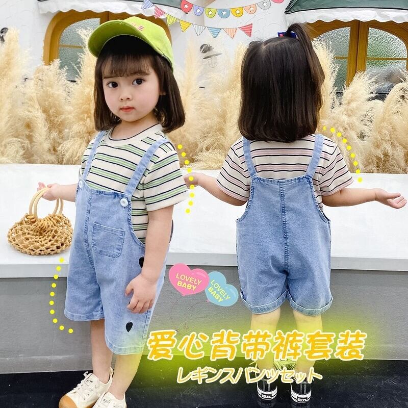 ガールズビブスーツ2021年夏新しい子供用スーツラブデニムショーツファッショナブルなツーピーススーツ サマー 夏物 ブルマー TB2-5 TB2-585617851080