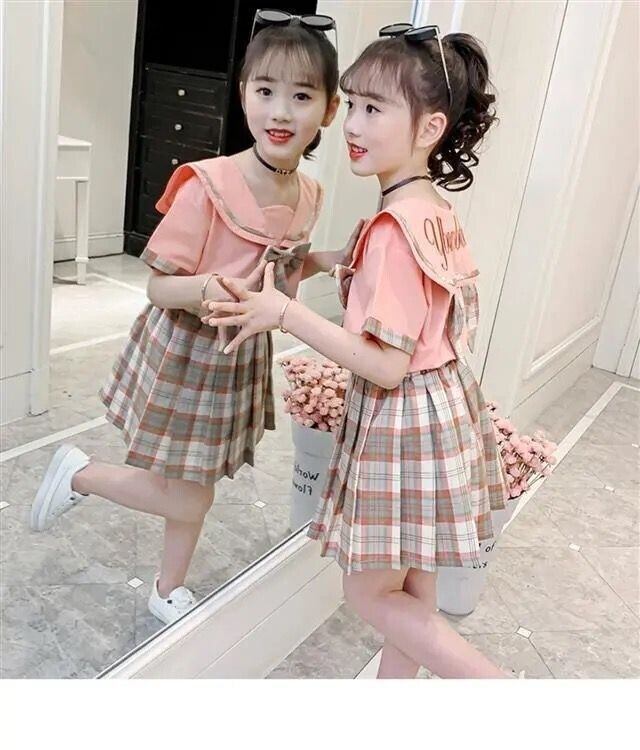 ガールズスーツサマードレス2021ニューウエスタンスタイルネットレッド子供服リトルカレッジスタイルキッズスカートツーピーストレンド 夏物 TB2-5 TB2-597293118881
