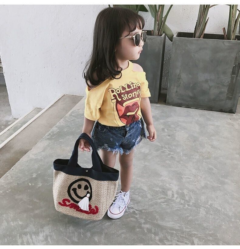 ガールズサマースーツ2021新しいストラップレス半袖Tシャツベビーエインスタイルデニムショーツサマーツーピーススーツ 夏物 ブルマー TB2-5 TB2-51272253356