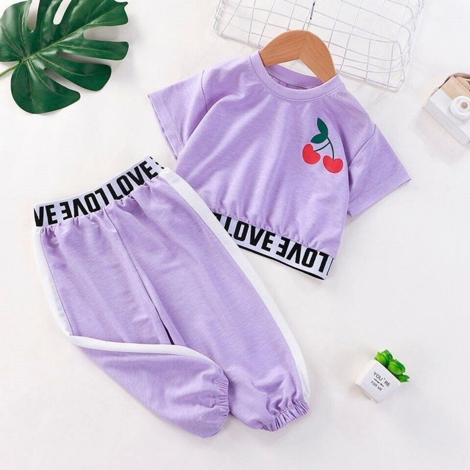 女の子用ショートTシャツ、子供用洋服、おへそ漏れ、サマードレス、ベビー洋服、ファッショナブルなミドルスリーブツーピーススーツ 夏物 TB2-5 TB2-581745627262