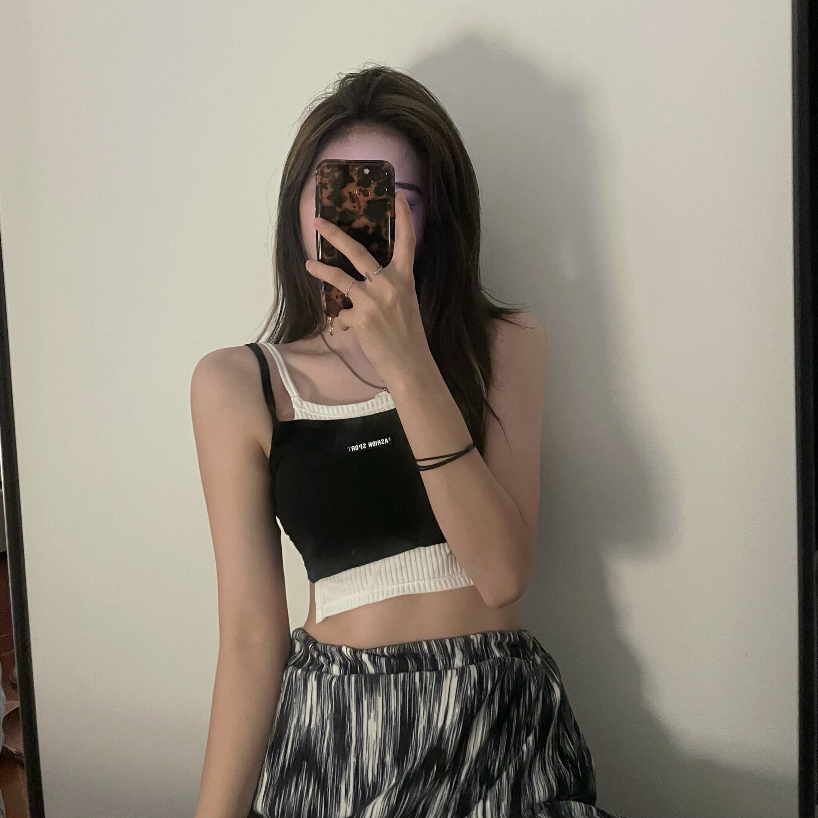 美しいバックスポーツスタイルのフェイクツーピースベスト女性サマースタイルデザインセンスアウターウェア半袖レスニットサスペンダートップ ショート ハーフスリーブ 夏物 ノースリーブ TB2-6 TB2-632854916140