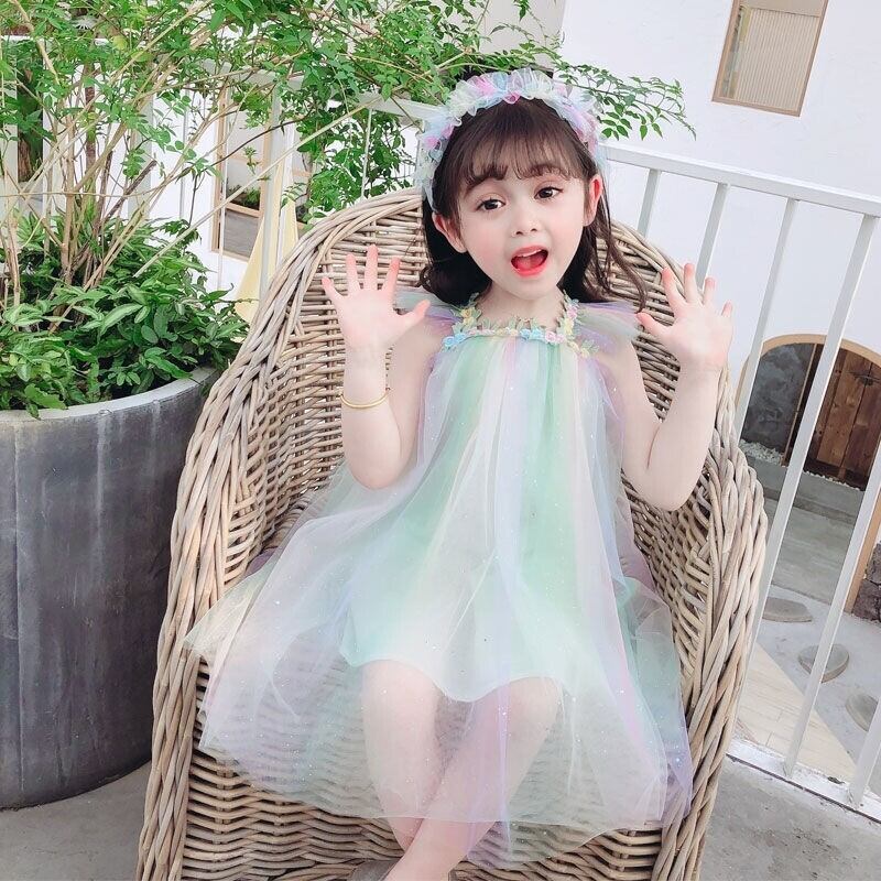 ガールズドレス2021夏の新しい赤ちゃんふわふわプリンセスドレス子供用レインボーメッシュスカートウエスタンスタイル サマー 夏物 TB2-5 TB2-530278636183